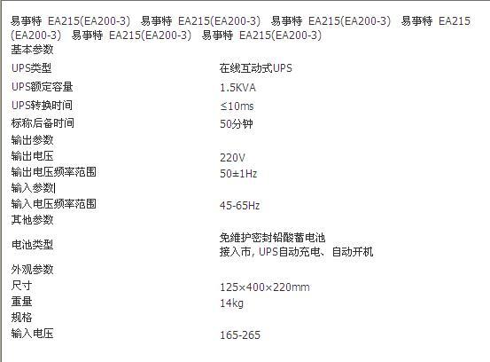 易事特UPS不间断电源EA215参数报价 1.5KVA后备式电源-北京旗益盛商贸有限公司发布日期:2018-5-13